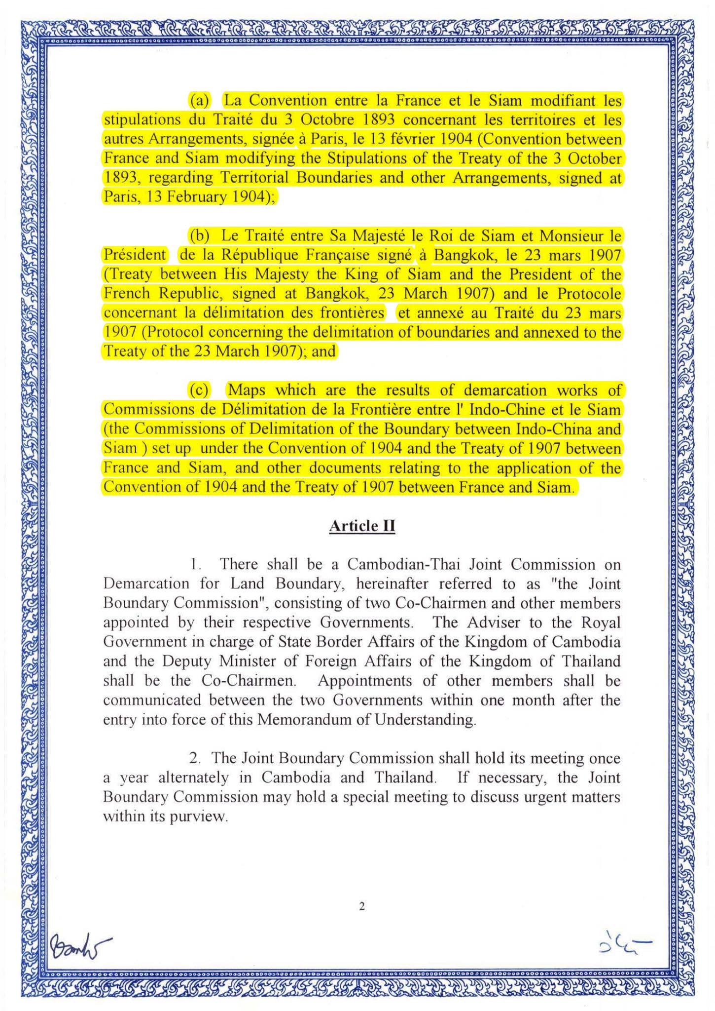 Mémorandum d’accord entre le gouvernement du Royaume du Cambodge et le gouvernement du Royaume de Thaïlande sur les relevés et la démarcation de la frontière terrestre, que les deux parties ont officiellement signé le 14 juin 2000 (MoU2000).